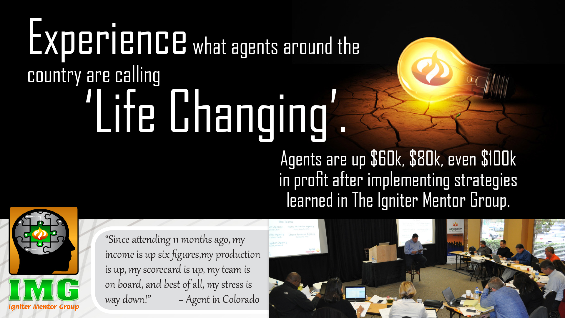 The Igniter Total Experience is a robust combination of live training events, software implementation, coaching and analysis that will address every aspect of your Agency and give you a clear roadmap for greater success and profitability. Plain and simple. Take a look at some of the tools we have in our arsenal.