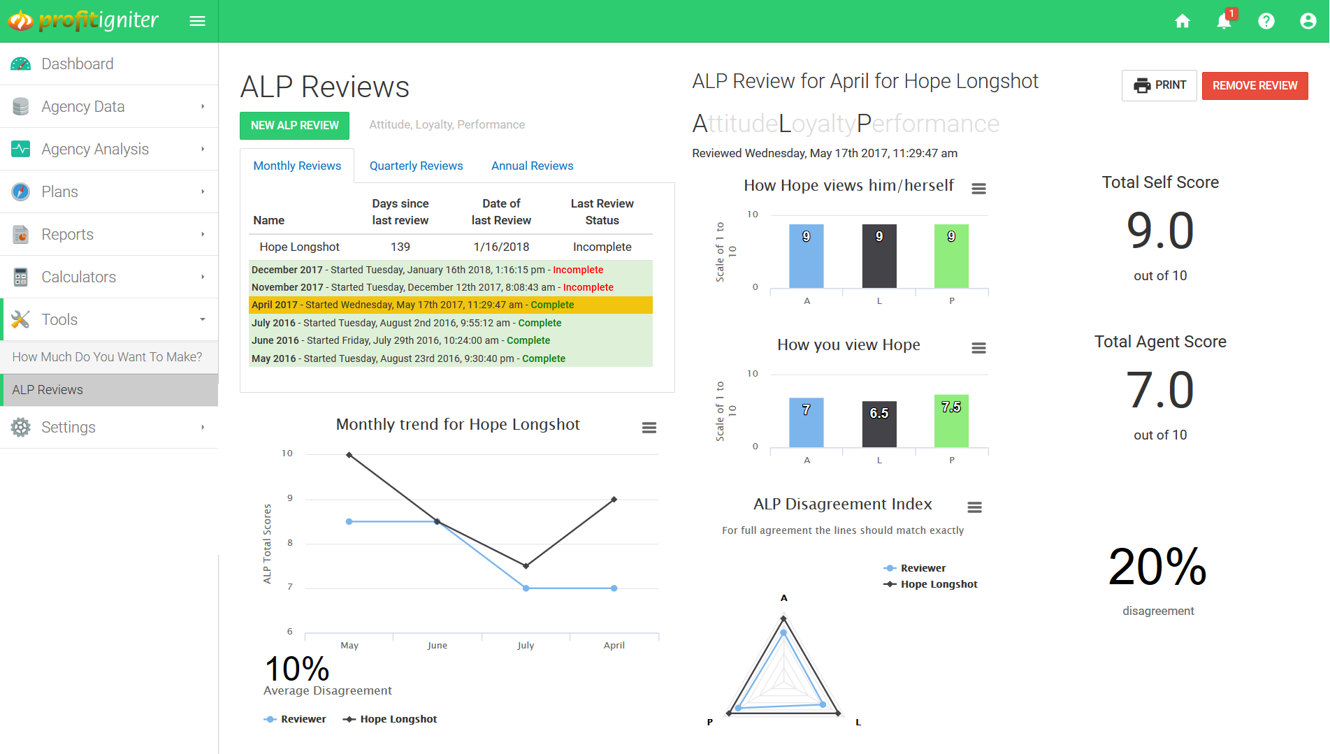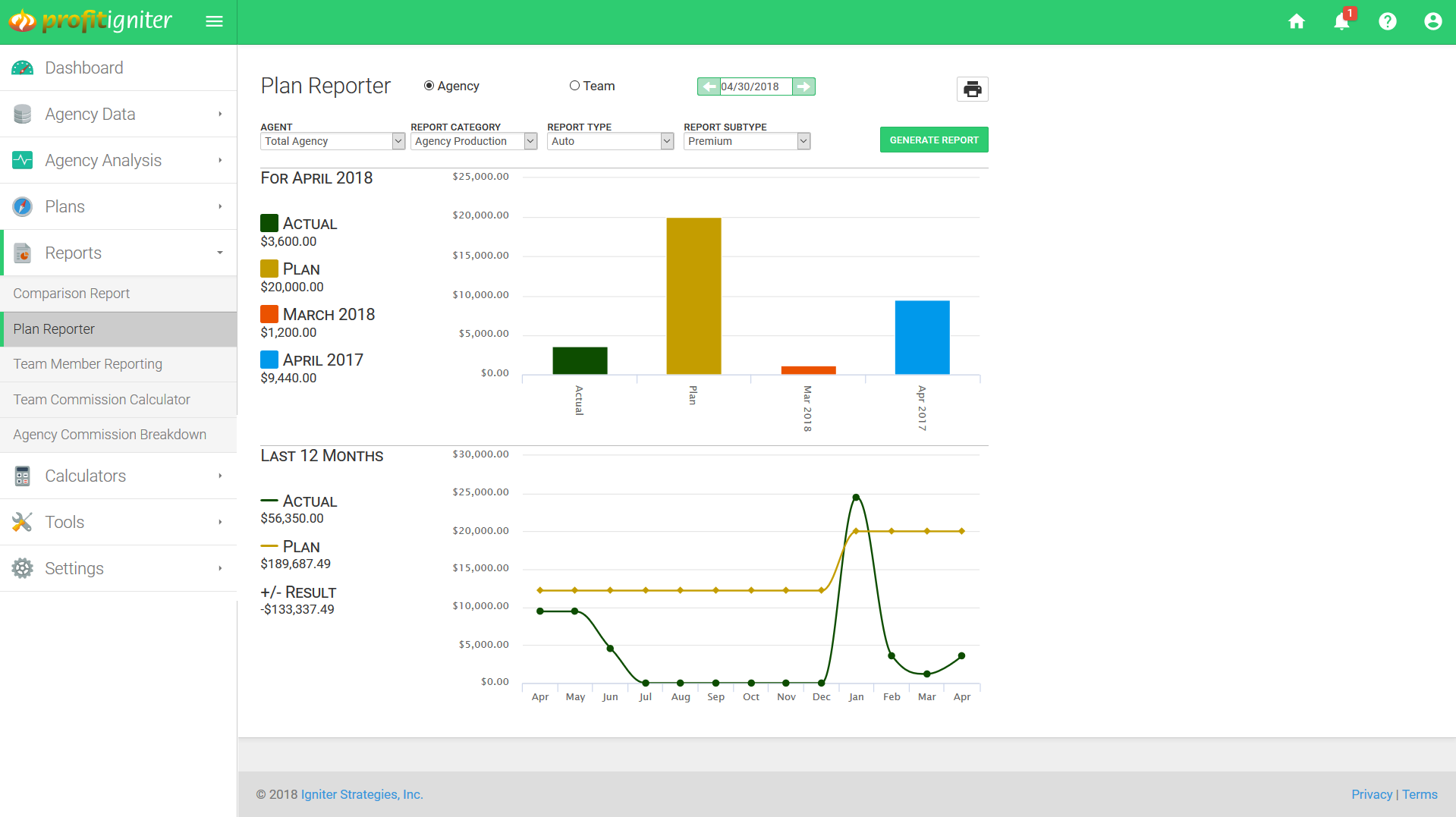 ProfitIgniter is a business planning and Agency Analysis software built to keep you and your team intentional about every aspect of your business. ProfitIgniter helps you and your team build business plans, conduct team member reviews, and analyze your numbers. All these tools together help to form a comprehensive Agency strategy.